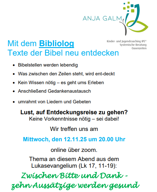 Außerdem finden Sie hier Informationen zum aktuellen Bibliolog, bzw. zum letzten Bibliologabend.